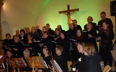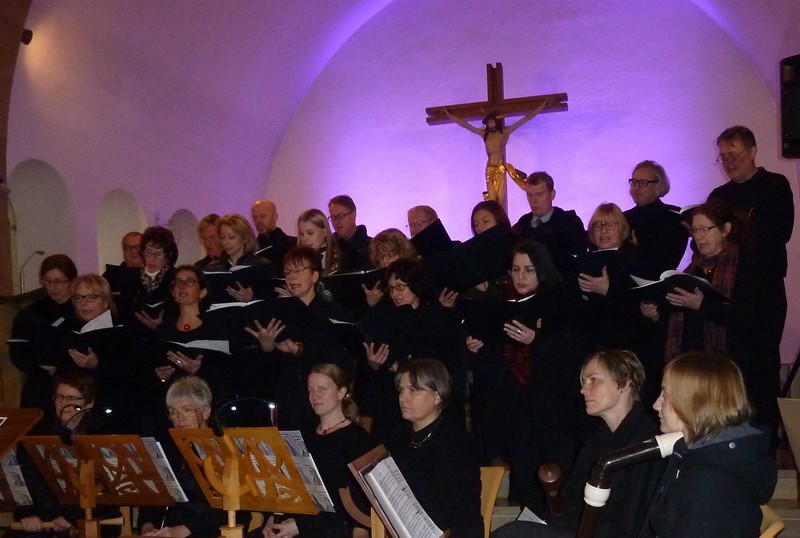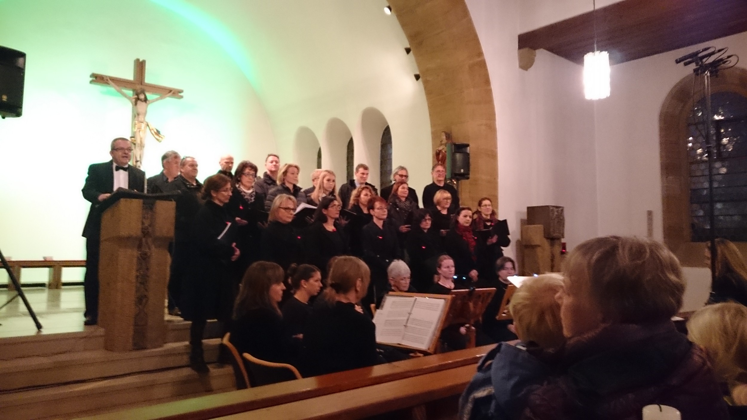 Ein ganz besonderes Konzert unter der Gesamtleitung von Kathrin Bechstein konnten die Besucherinnen und Besucher des festlichen Abends am 2. Advent in der St. Michael Kirche erleben. Der Liederkranz Weiler in den Bergen und das Bettringer Flötenensemble „Batheri“ sangen und spielten weihnachtliche Melodien. Vom ersten Gesangsstück „Die wunderbarste Zeit ist nah“ bis zu „Stern über Bethlehem“ am Ende des Konzerts herrschte eine andächtige, lauschende Stille, bevor die Sängerinnen und Sänger, Pianistin Carolin Schreier sowie die Flötenspielerinnen und Moderator Manfred Laduch mit langanhaltendem Beifall belohnt wurden. Für die Technik sorgte Horst Linke. |