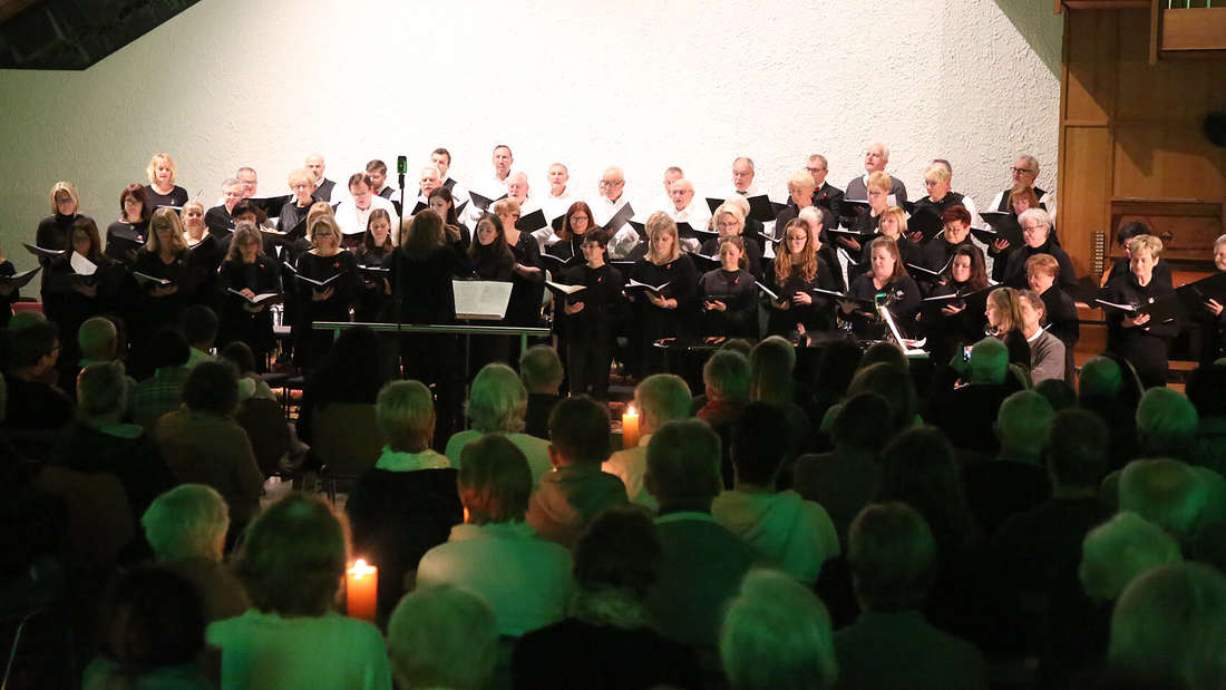 Die rund 60 Sängerinnen u nd Sänger von „Taktvoll“ Liederkranz Bettringen, von Weiler und „Stimmkultur“ erfüllten unter Leitung von Kathrin Bechstein das Versprechen im Titel ihres Konzerts in Bettringen zum Advent: „It’s the most wonderful Time of the Year“. Englische Weihnachtslieder erklangen in der Auferstehung-Christi-Kirche. Nicht so bekannt wie die deutschen, aber hoch musikalisch interpretiert, besinnlich, mitreißend und zu Herzen gehend. Amelie Hann begleitete den Chor am Klavier und das Instrumentalensemble Lea Hann, Violine, und Christian Böttcher, Klarinette. Informativ und voller Humor führte Detlef Dietrich in angelsächsisches Brauchtum ein. Warum ist in Großbritannien und in den USA der Geschenketag am ersten Weihnachtstag und nicht wie bei uns am Heiligen Abend? Was passiert, wenn Santa Claus und Knecht Rupprecht auf dem Dach herumschlittern und auf dem Polizeirevier landen? Dietrich antwortete mit kleinen Geschichten voll Heiterkeit, Besinnlichem, die im Konzert am Freitag in der Gmünder Franziskuskirche wieder zu hören sind. |