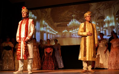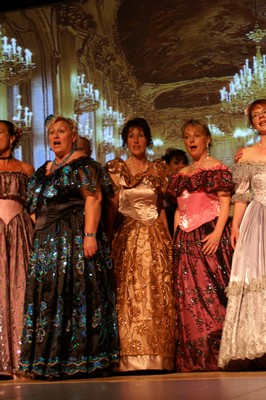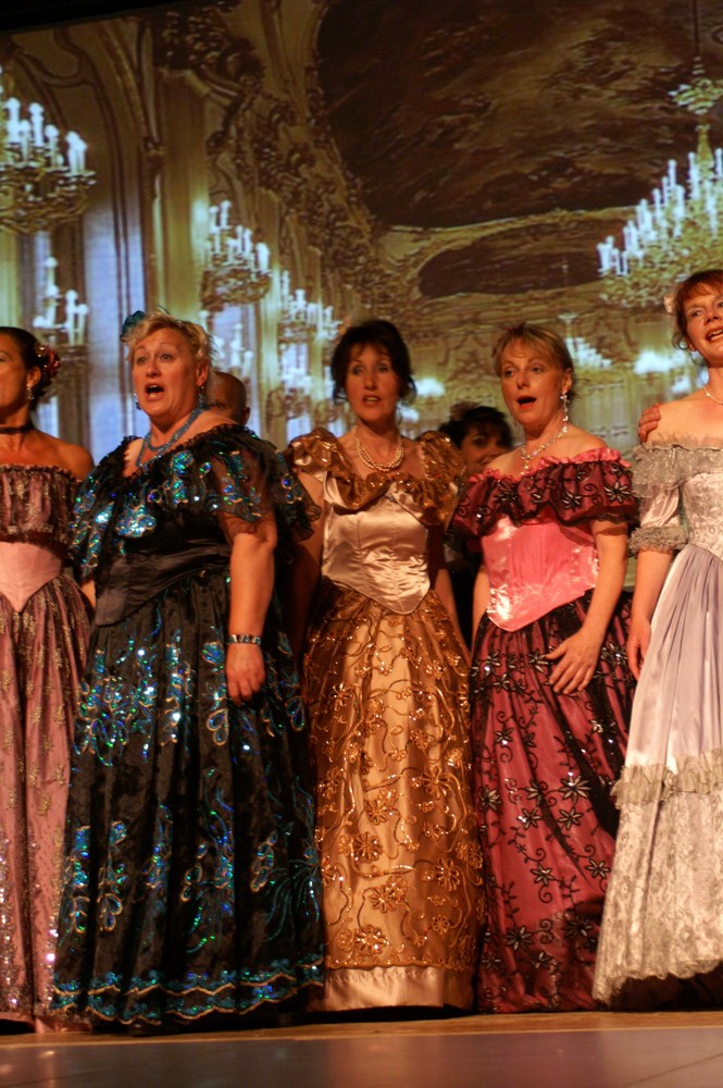 Die Gesangsstücke wurden von Antal Varadi auf dem Klavier begleitet, zum Teil auch von Sarah Enneper auf der Geige. Manfred Laduch führte mit einem Streifzug durch die Weltgeschichte durch den Abend: Diese Art Geschichtslektion, die Politik und Mode und gute Geschichten verbindet, wäre den Schulen zu wünschen - sie würde nicht vergessen oder gar nicht erst wahrgenommen. Neue Stoffe kommen, buchstäblich, zum Tragen, wenn die Toga gegen die Renaissance-Krinoline getauscht wird. |