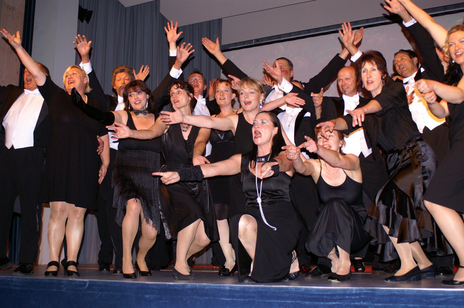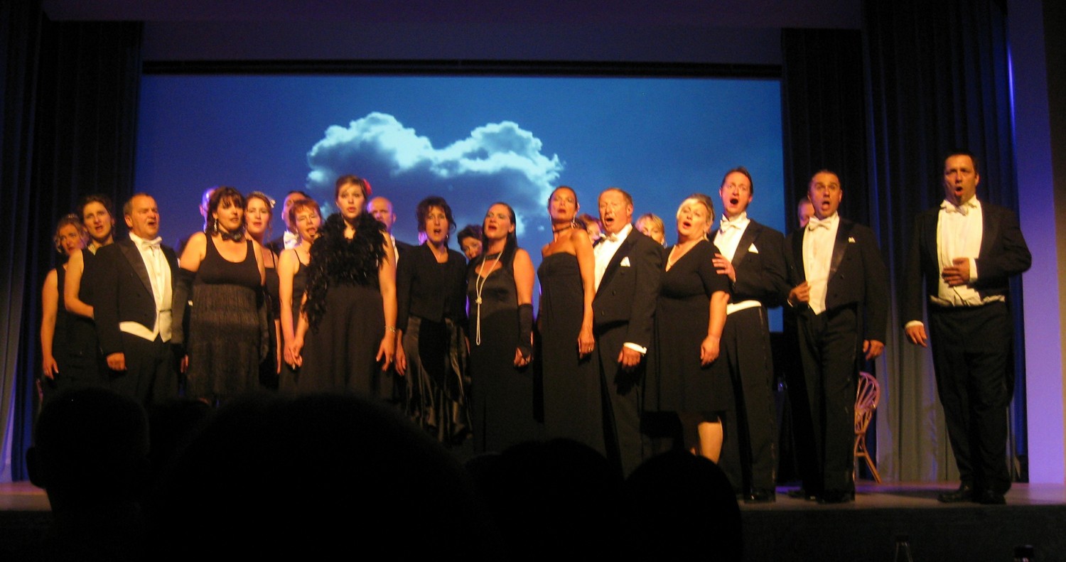 Der Chor des Liederkranzes Weiler hat unter der Leitung Kathrin Bechsteins einige der bezauberndsten Lieder der Musikgeschichte auf die Bühne gebracht, eine Hommage an die Gassenhauer früherer Generationen, die in all den Jahren nichts von ihrem Charme eingebüßt haben. Operettentitel und Evergreens der 20er- und 30er-Jahre wurden nicht nur gesungen, sondern auch getanzt und gespielt. Basierend auf Lisa Elsers musikalischer Revue „Vom Feigenblatt zum Seidenfrack“, die der Liederkranz vor elf Jahren aufgeführt hat, hat Kathrin Bechstein noch mehr auf Tanz gesetzt, zudem auf gleichermaßen gespielte und gesungene Geschichten rund um einige der bekanntesten Liebespaare und Liebesgeschichten der Welt - mit gutem Grund, waren doch alle Beteiligten „von Kopf bis Fuß auf Liebe eingestellt“. |
