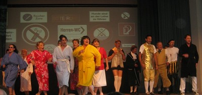 Heike Groll sang das Lied, das dieser Revue den Namen gegeben hat: Ich bin von Kopf bis Fuß auf Liebe eingestellt. Ja, der Liederkranz Weiler hat Talente, mit denen zu arbeiten wohl eine Freude ist. Brigitta Wanner ließ die etwas ältere Marlene leben, die gelernt hat, dass es sich nicht lohnt, aus Liebe zu weinen. Und nach dem Schlusschor - selbstverständlich wurde eine Zugabe eingefordert - war allenthalben ein Summen und Singen im Saal zu hören: Unsterbliche Lieder, ein richtig schöner Abend. Danke. |