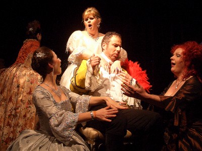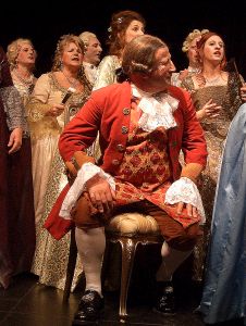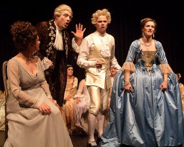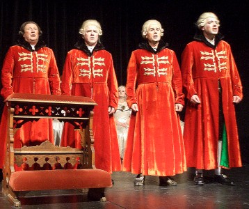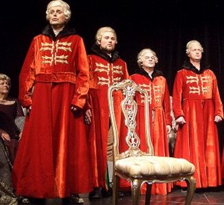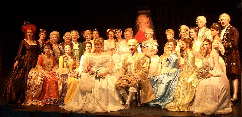 Kein gutes Haar ließen Michel Pick als Fürstbischof und Horst Linke als Graf Arco, der den Komponisten mit einem Tritt aus dem Haus des Fürstbischof jagte, am Menschen Mozart, während sie doch seiner Musik nicht widerstehen konnten.