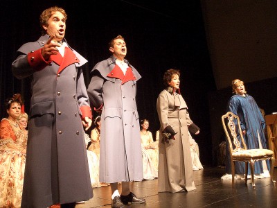 Eingebettet waren diese im Detail noch aufschlussreicheren Merkpunkte aus Mozarts Leben in viele Weisen Mozarts, die bis heute Ohr und Herz erfreuen. Doch auch aus Beethovens „Fidelio“ war das wunderschöne Quartett „Mir ist so wunderbar“ zu finden. Dies trugen D‘Ann Ricciolini, Brigitta Warmer, Richard Arnold und Stephan Kirchenbauer hingebungsvoll vor. Gelungen war sodann u.a. auch der Chor der drei Damen (Daniela Dinser, Heidi Beck und Agnes Pick) „Bald prangt, den Morgen zu verkünden“ aus der „Zauberflöte“ Daraus fehlte auch nicht der Männerchor „O Isis und Osiris“.