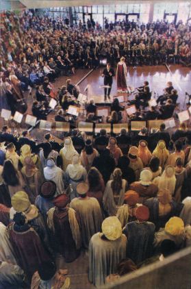 Zugegeben, stark gekürzt, von dreieinhalb Stunden auf 20 Minuten, komprimiert auf fünf bekannte Szenen und musikalische Motive, aber in Ausstattung und Ausführung höchst beachtlich. "Wagner für Eilige" nannte es Stadtverbandsvorsitzender Richard Arnold scherzhaft, wobei er nicht bedacht hatte, dass die Gmünder gerne noch stundenlang zugehört hätten. Denn das, was die rund 180 Mitwirkenden aus acht Chören, der Philharmonie Schwäbisch Gmünd mit Bläsern und der Jungen Ballett Kompanie der Sabine-Widmann-Studios (Leitung von Liliana Potyka-Kalecinski) auf die Beine gestellt hatten, war grandios.