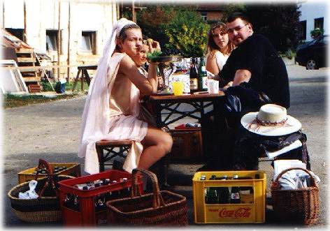 Auch das gehört zum Theaterspielen dazu! Geselligkeit in den Pausen während der Proben. |
